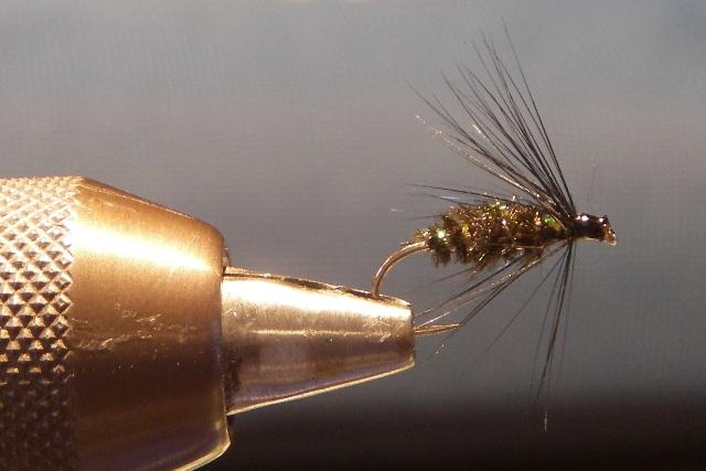 7. Het resultaat een prima vlieg de black & peacock voor op het stromend water . Bind deze vlieg ook eens met een goudkop voor de hackle.
