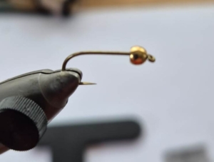 Marabou als staart inbinden. Staart lengte ongeveer haaksteel lengte