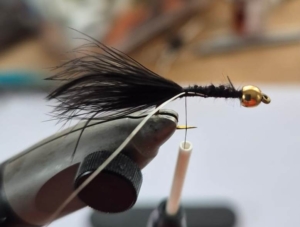 Deze kleine streamers gebruikt Paulus Hogervorst graag op het OVM (oostvoornesemeer) om forel te vangen. Ze zijn te binden in diverse kleuren. Voorbeeld is in zwart gebonden. Deze streamer is ook bruikbaar op baars en in de wat grotere maten ook op de rivieren in het buitenland.