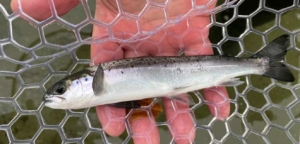 Zalmpjes zijn te herkennen: door de diep gevorkte staart. Lange zijvinnen en stippels boven de zijlijn en ook vaak minder dan andere forellen.